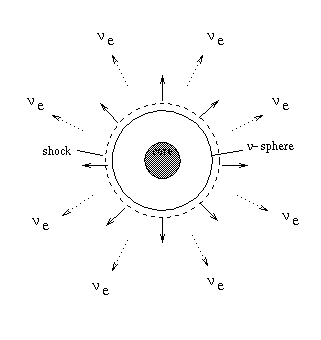 The positron from this reaction, which retains most of the energy of the incoming neutrino, is detected from its Cerenkov light. For a gravitational collapse at the center of the Galaxy (8.5 kpc away), Super-Kamiokande expects to see about 5000 events. A few percent of the supernova events observed will be neutrino-electron elastic scattering events (neutral current and charged current),